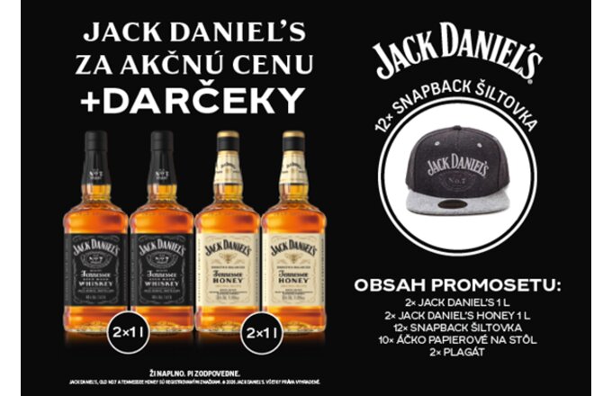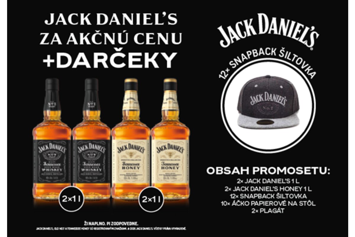 Popis:Jack Daniel´s PROMOSET obsahuje:2x Jack Daniel´s 1l2x Jack Daniel´s Honey 1l12x snapback šiltovka10x áčko papierovné na stôl2x plagát
