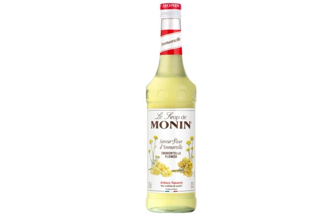 Objavte Le Sirop de MONIN Immortelle Flower – vzácny výtvor, ktorý odhaľuje hrejivé, medové a jemne korenisté tóny tejto ikonickej kvetiny pochádzajúcej z makchie.